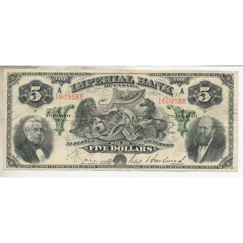 1920 Imperial Bank of Canada $5 Original Very Fine