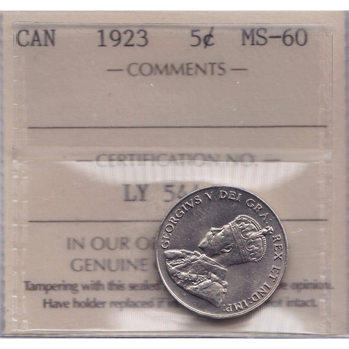 1923 Five Cent - ICCS MS-60.