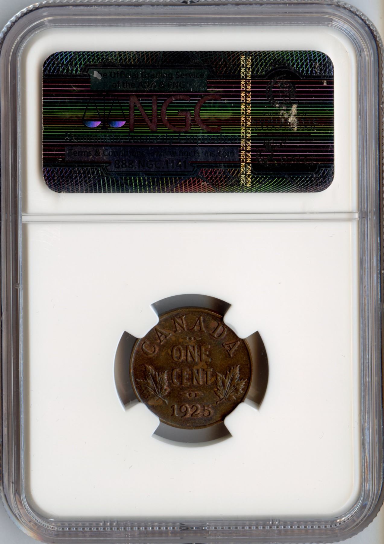 NGC MS64, Brown. Superb rainbow toning.