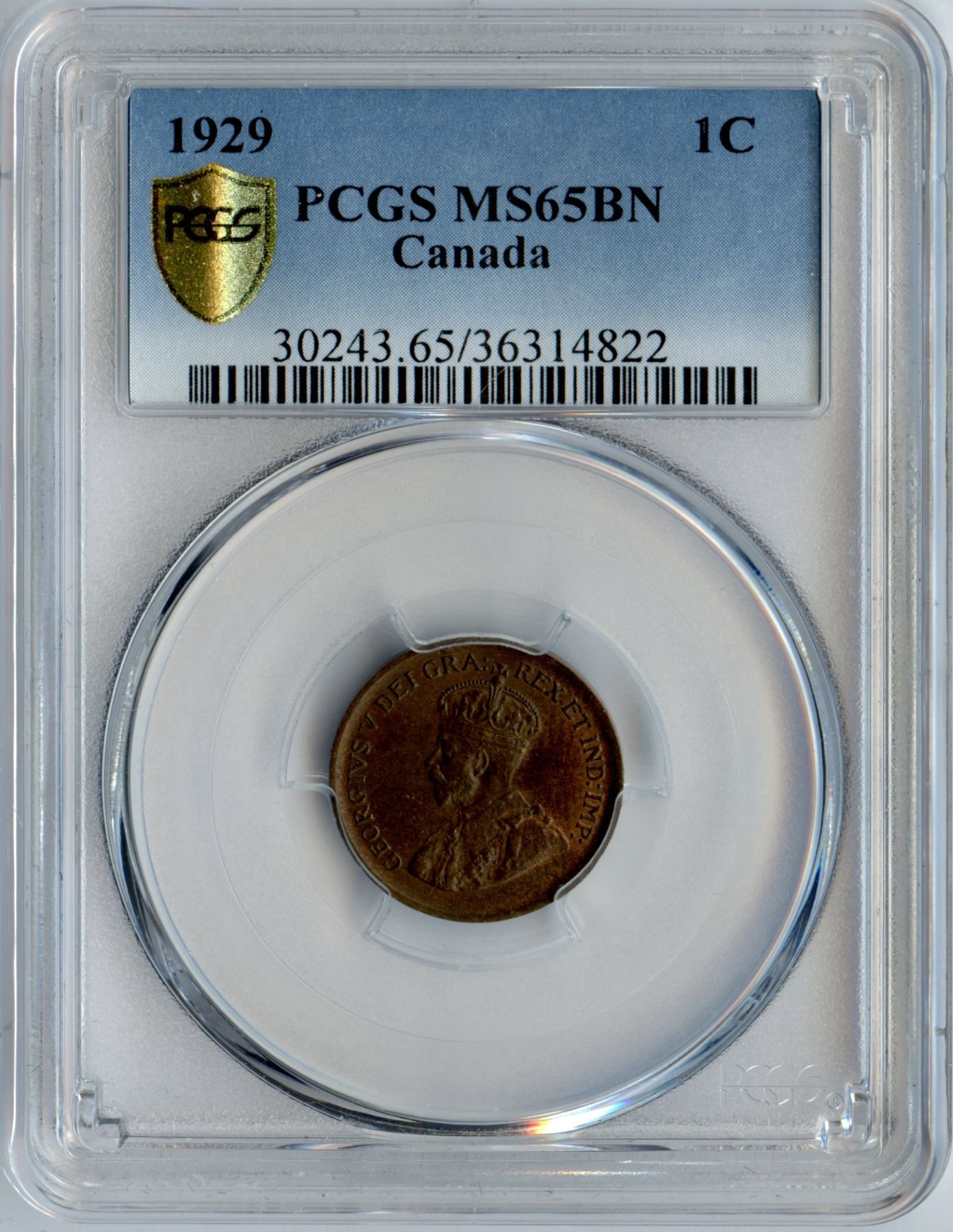 1929 One Cent - PCGS MS65 Brown. Sharp strike and copious areas of red on the coin.