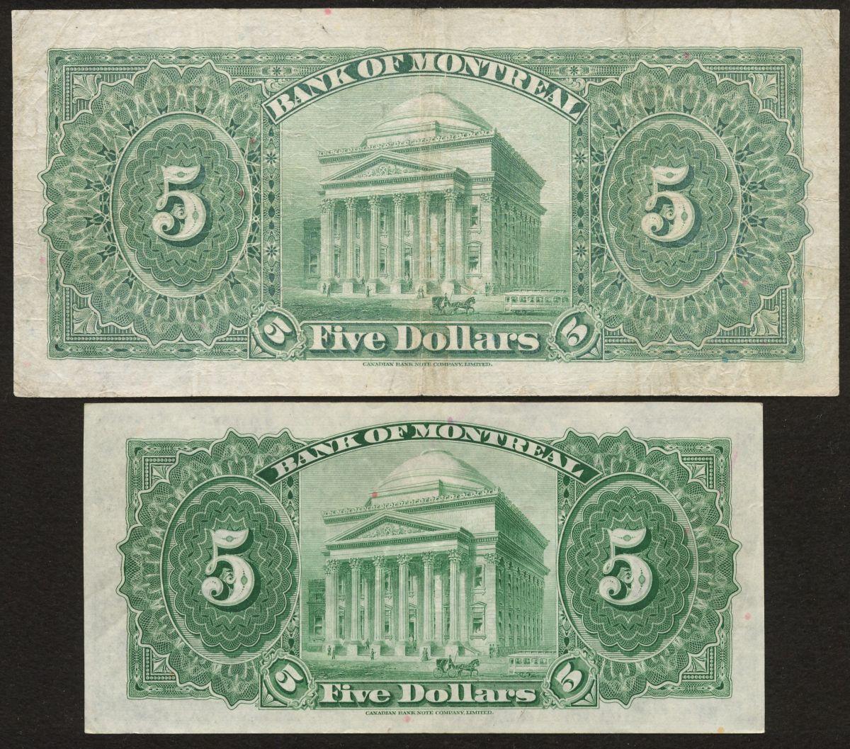 1931 & 1938 Bank of Montreal $5 Lot of Two Notes