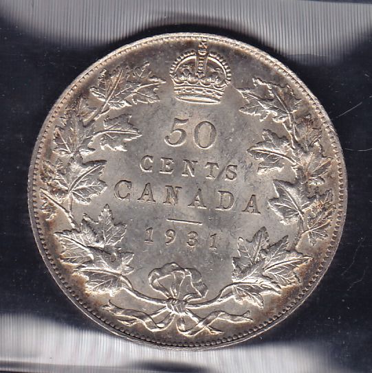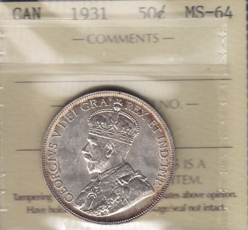 1931 Fifty Cent. ICCS MS-64. Rare coin, lustrous.