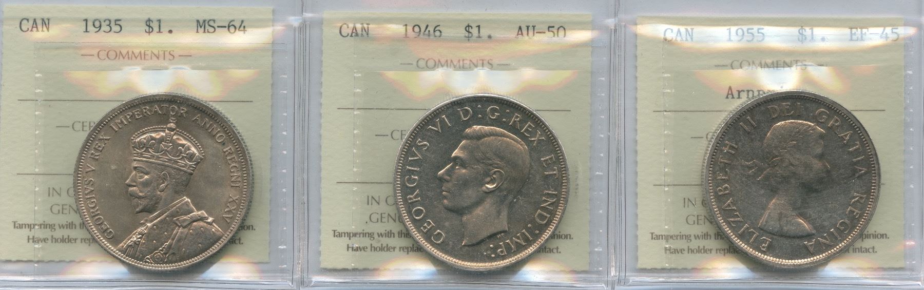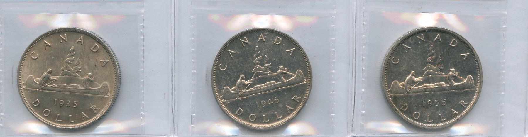 Lot includes: 1935 MS-64. 1946 AU-50 & 1955 Arnprior (no die break), EF-45. 3 pcs.