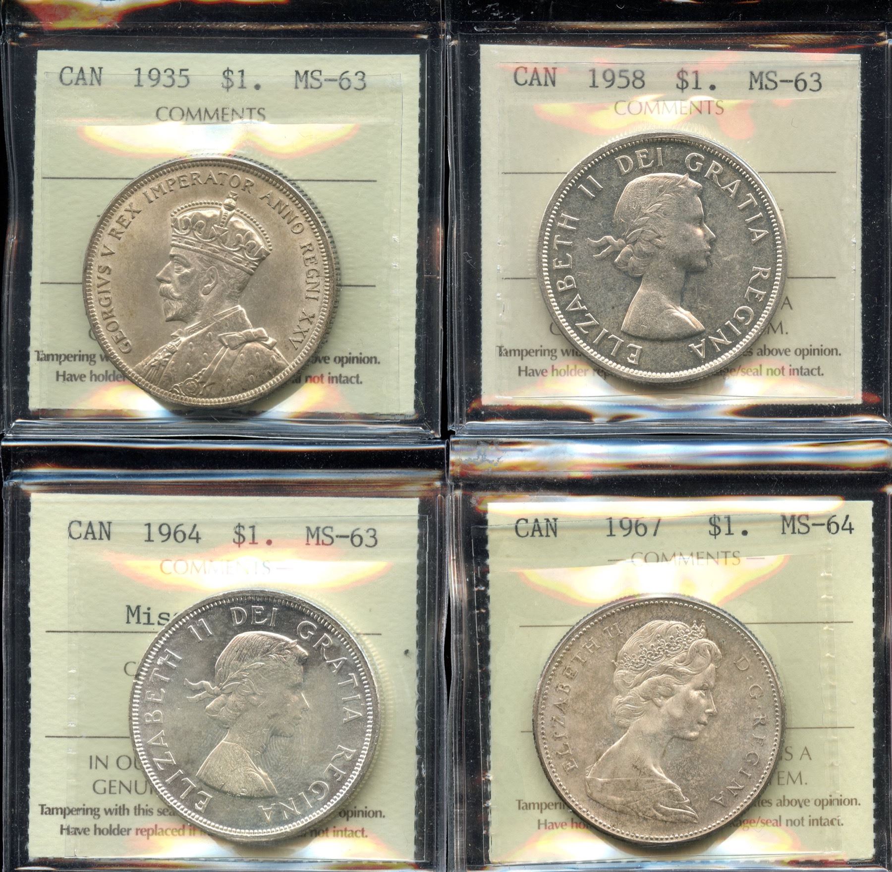 1935, 1958, 1964, 1967 ICCS Graded Silver Dollars
