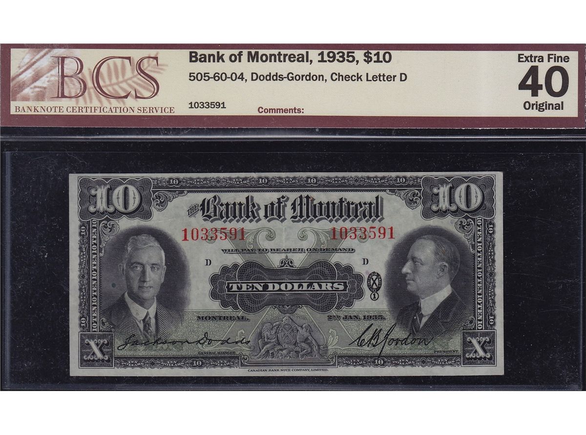 1935 Bank of Montreal $10 - CH 505-60-04, BCS EF 40 Original, S/N:1033591/D.