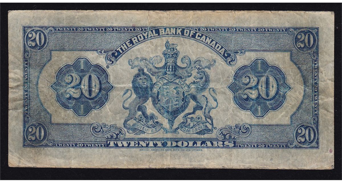 1935 Royal Bank of Canada $20 - CH 630-18-06a, Fine with pen marks on front. S/N:139770/A.