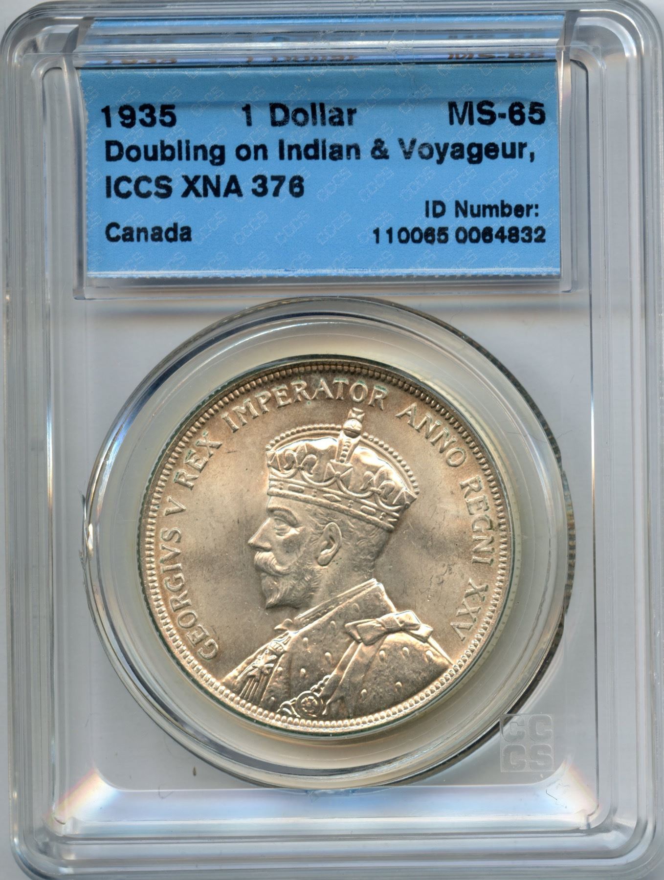 CCCS MS-65, cross graded with ICCS. Doubling on Indian & Voyageur is noted on the CCCS certificate.