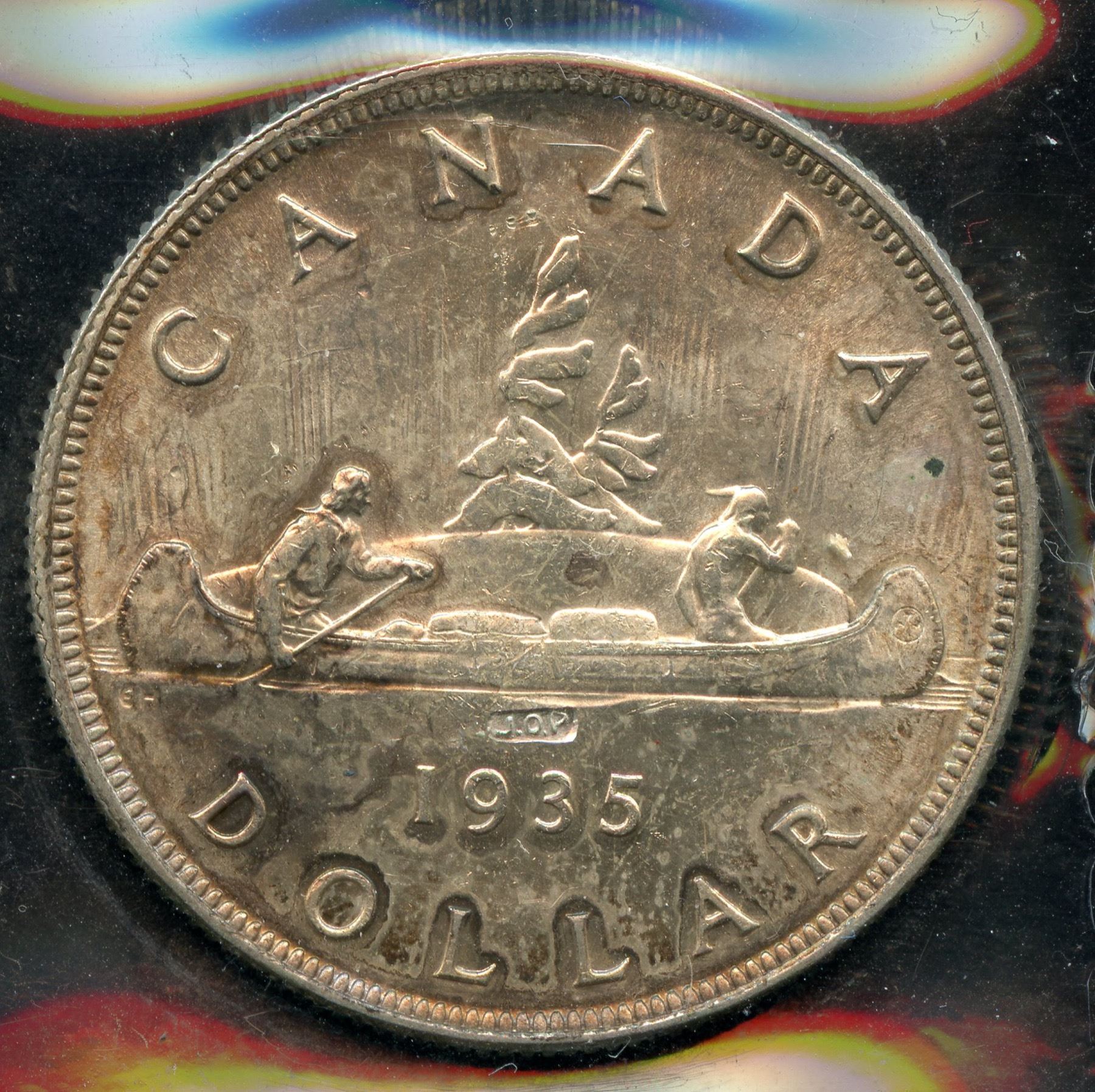 ICCS MS-63. J.O.P. Type 2. Counterstamped above the date on the reverse, bearing the initials J.O.P for Joseph Oliva Patenaude, a private jeweler in British Columbia.