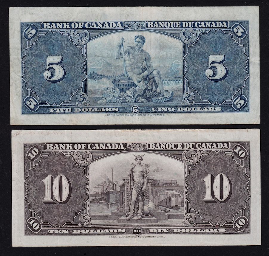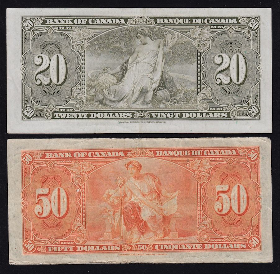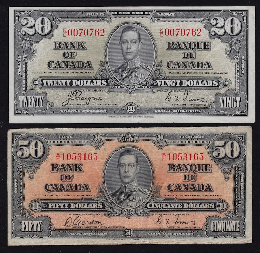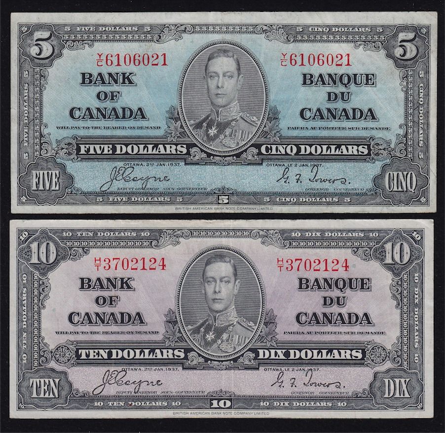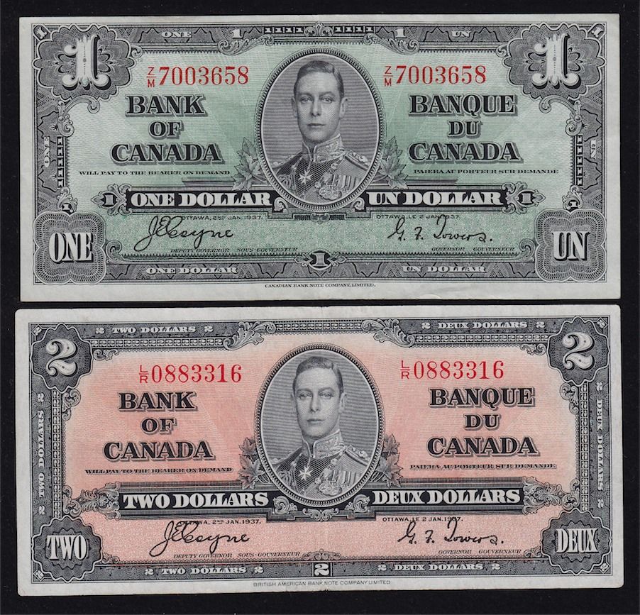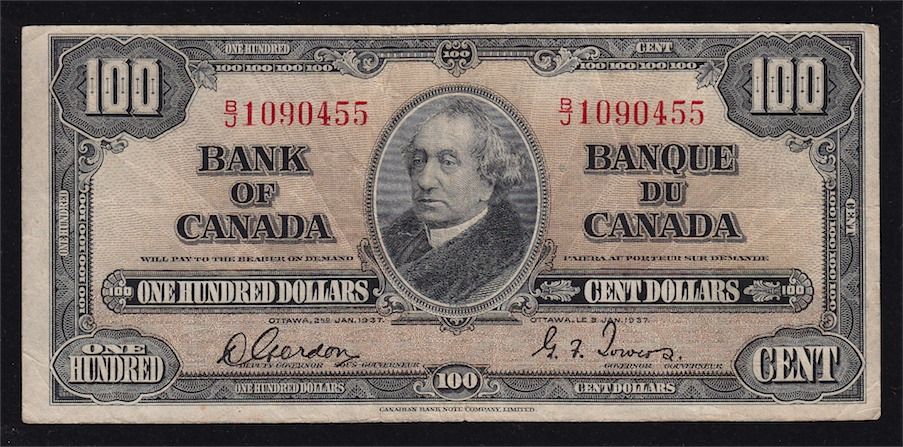 1937 Bank of Canada $1 - $100 Set. Conditions F-EF, viewing is recommended, good value. 7 Pcs.