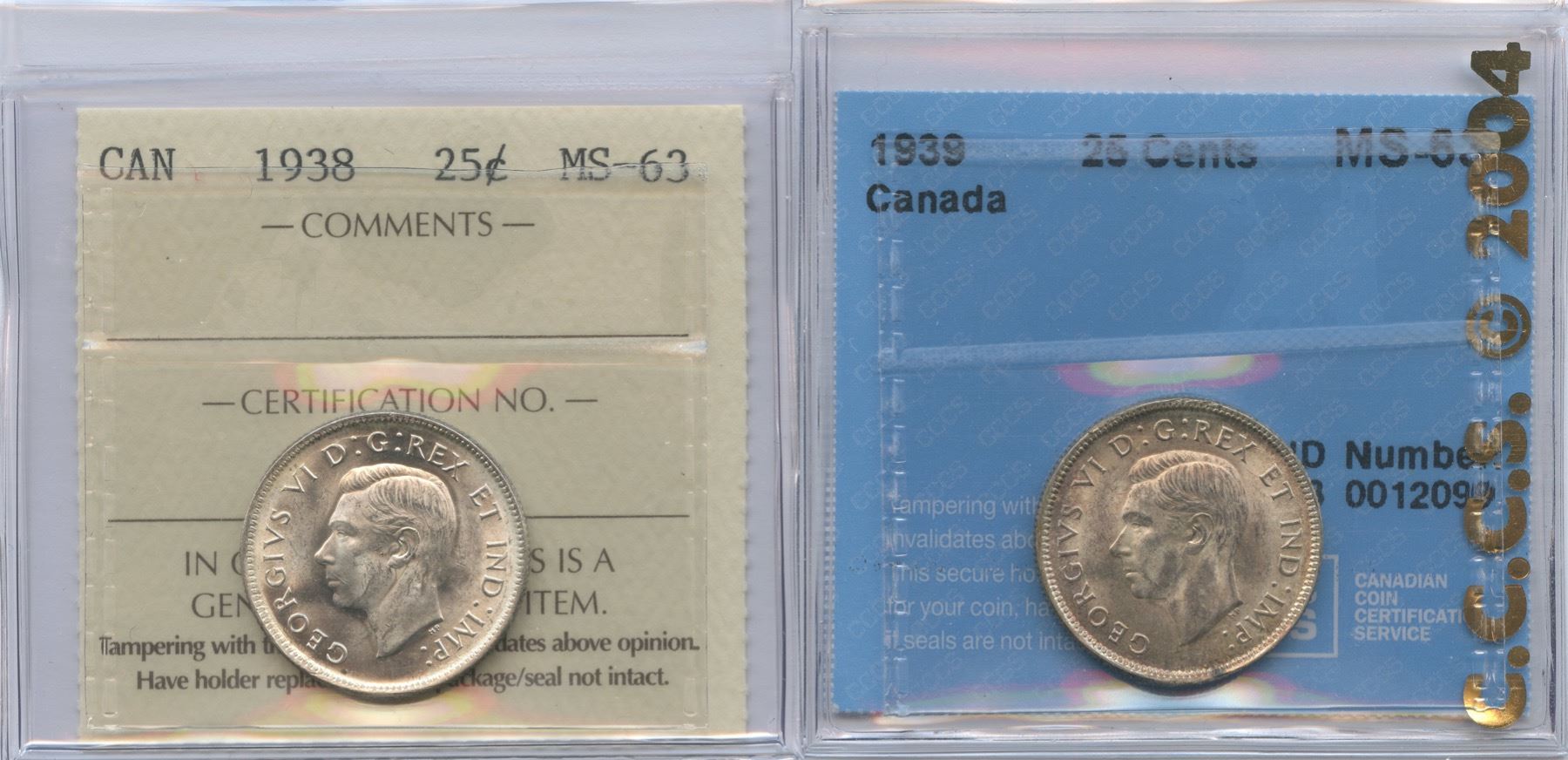 Includes: 1938 ICCS MS-63 & 1939 CCCS MS-63. 2 Pcs.