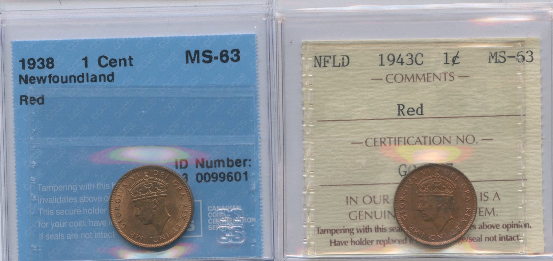 Includes: 1938 CCCS MS-63, red. 1943c ICCS MS-63, red. 2 pcs.