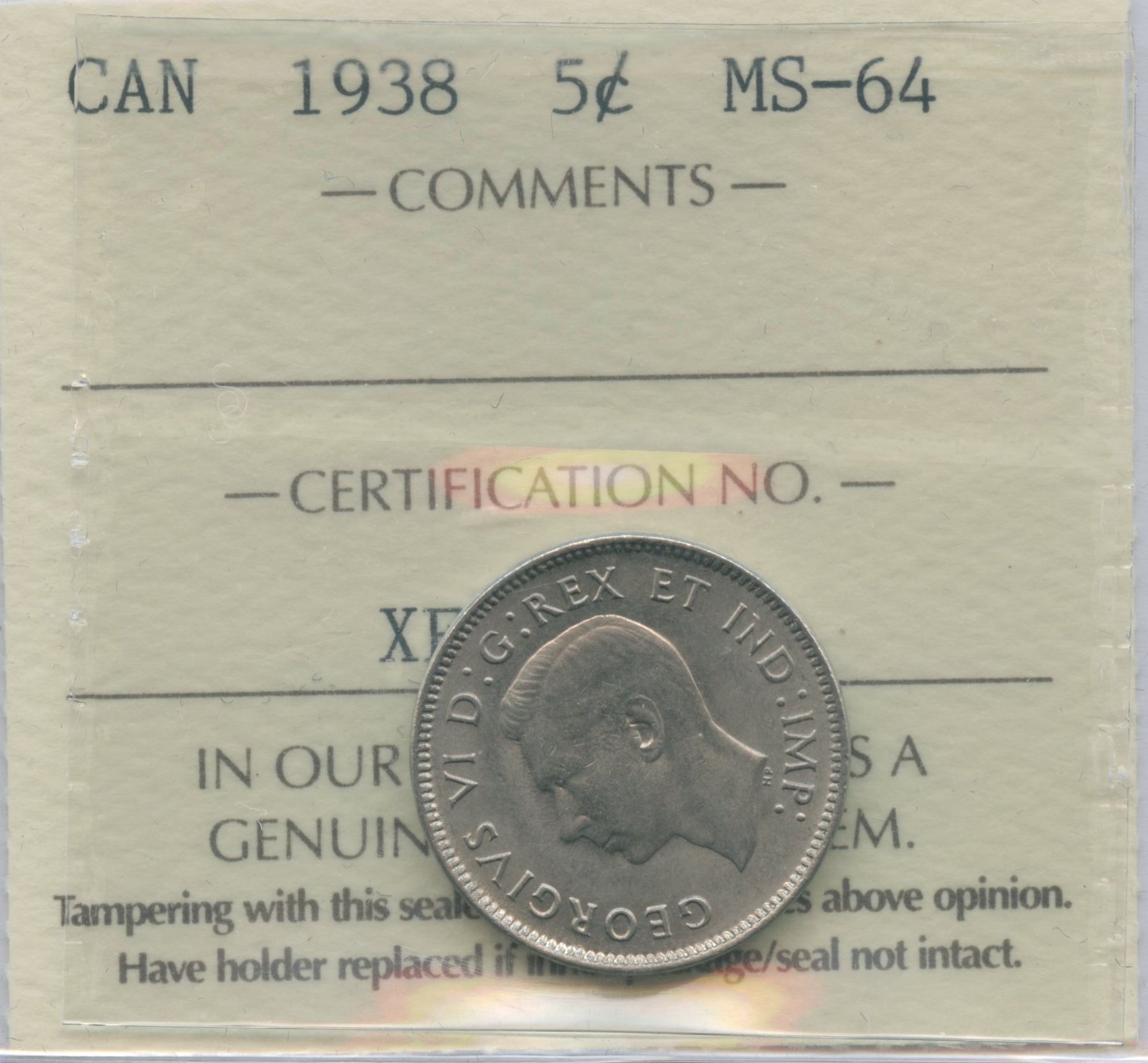 1938 Five Cents