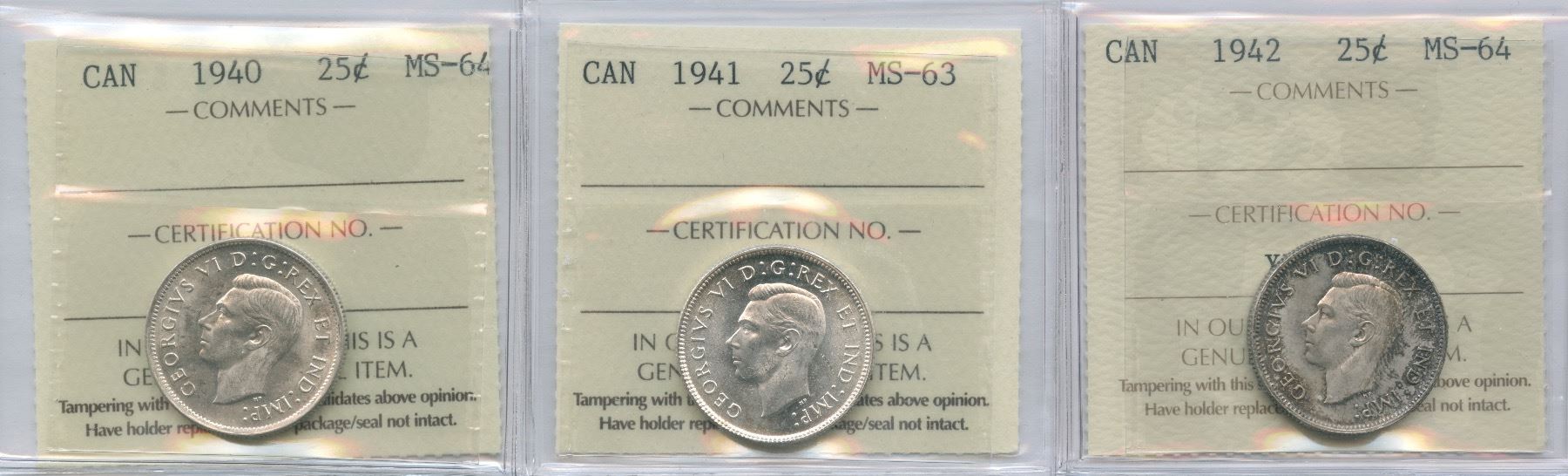 Includes: 1940 MS-64. 1941 MS-63. 1942 MS-64. 3 pcs.