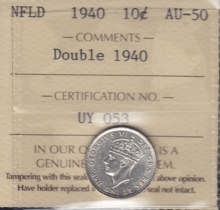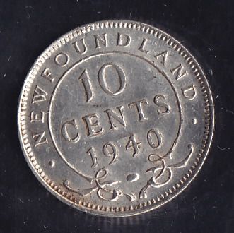 1940 Newfoundland Re-engraved Ten Cent - ICCS AU-50.