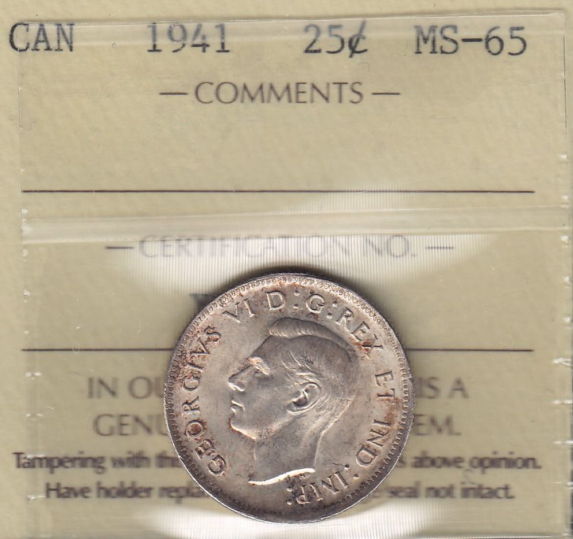1941 Twenty Five Cent - Nice original lustre, ICCS MS-65.