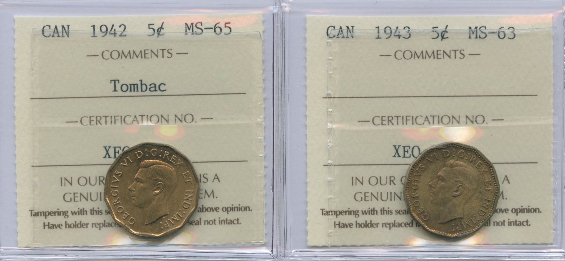 Includes: 1942 Tombac MS-65 & 1943 MS-63. 2 pcs.