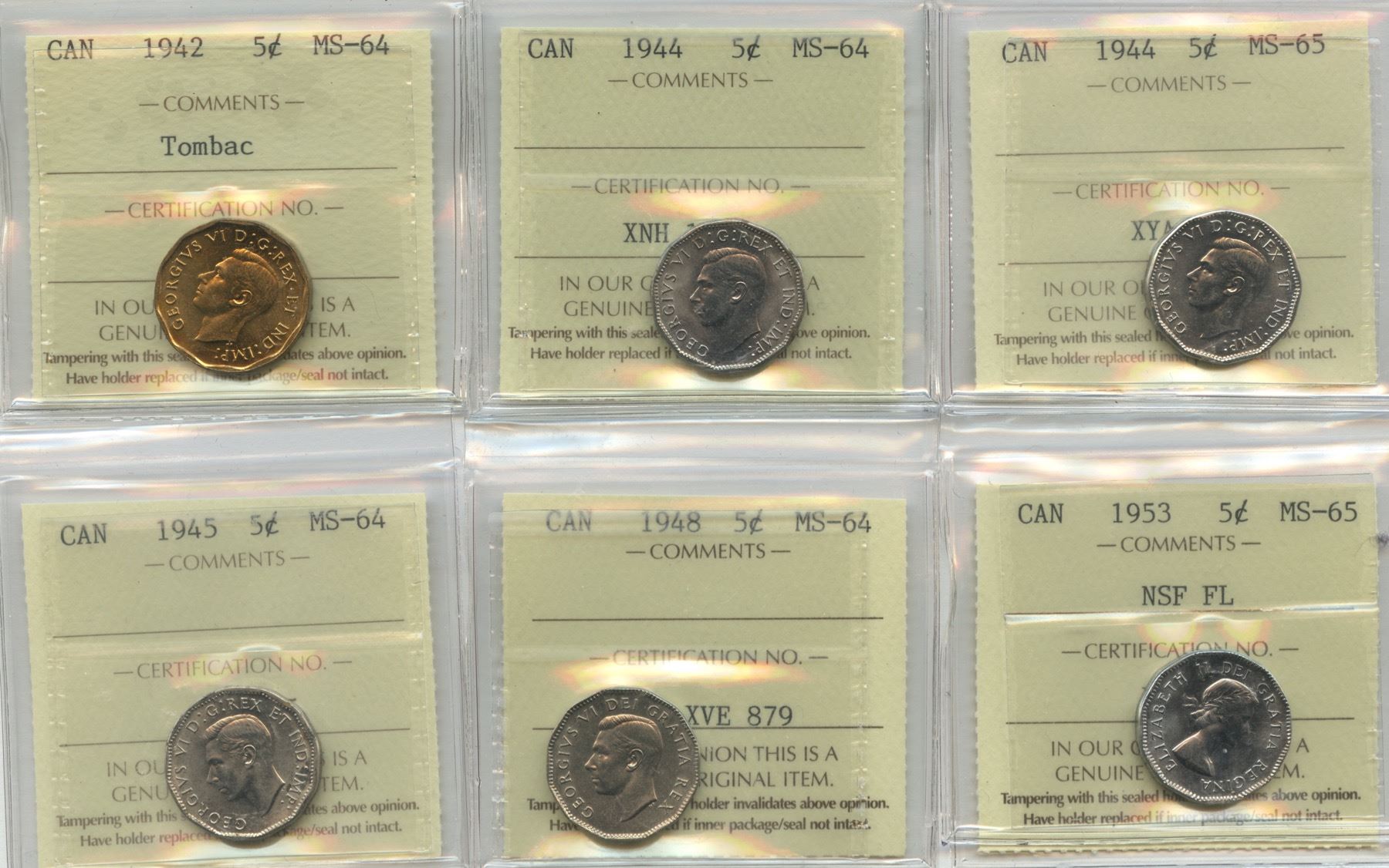 Includes: 1942 MS-64 Tombac. 1944 MS-64 & MS-65. 1945 MS-64. 1948 MS-64. 1953 MS-65, NSF FL. 6 pcs.