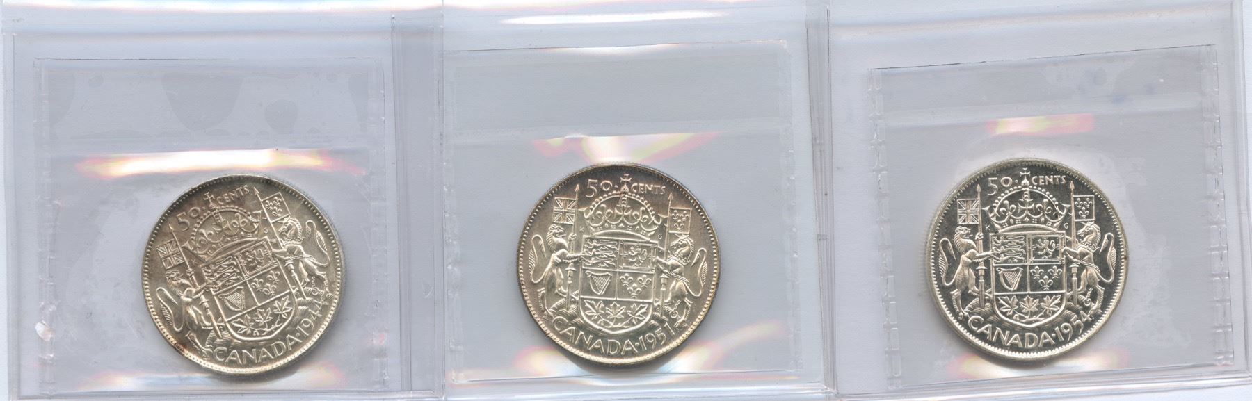 Includes: 1944 MS-63, Far 4. 1951 MS-64. 1954 MS-64, cameo. 3 pcs.
