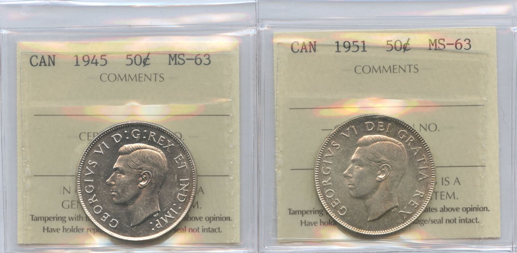 Both ICCS MS-63. 1945 is bright white, and a wide date pointed 5/5. 2 pcs.