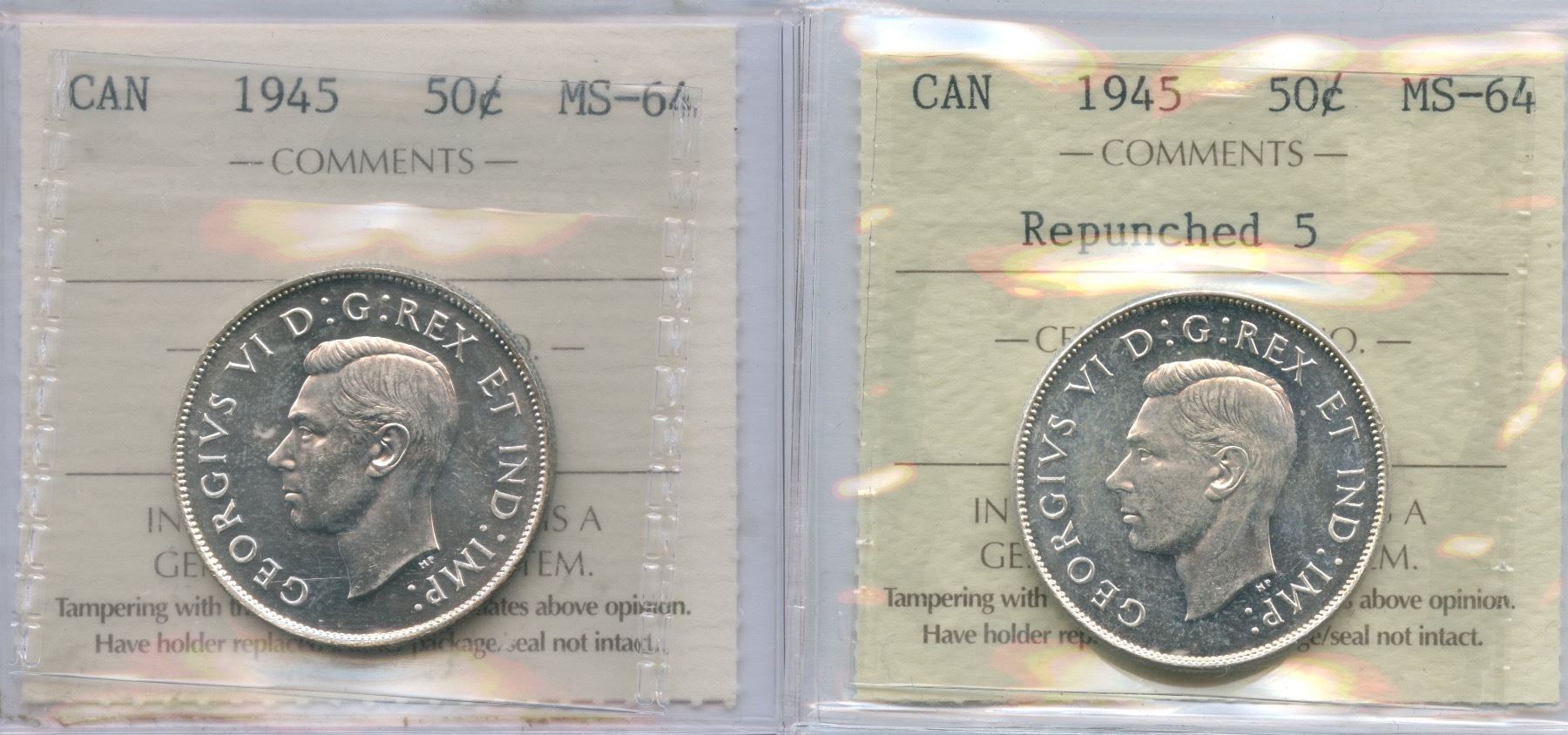 Includes: 1945 MS-64 & 1945 MS-64, Repunched 5. 2 pcs.