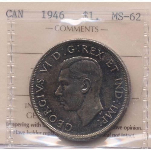 1946 Canadian One Dollar ICCS MS-62<BR><BR>Nice original toning