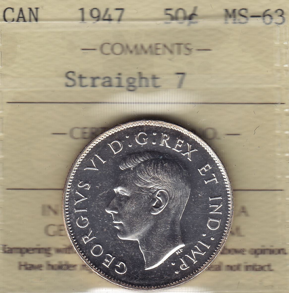 1947 Fifty Cent ICCS MS-63, Straight 7.