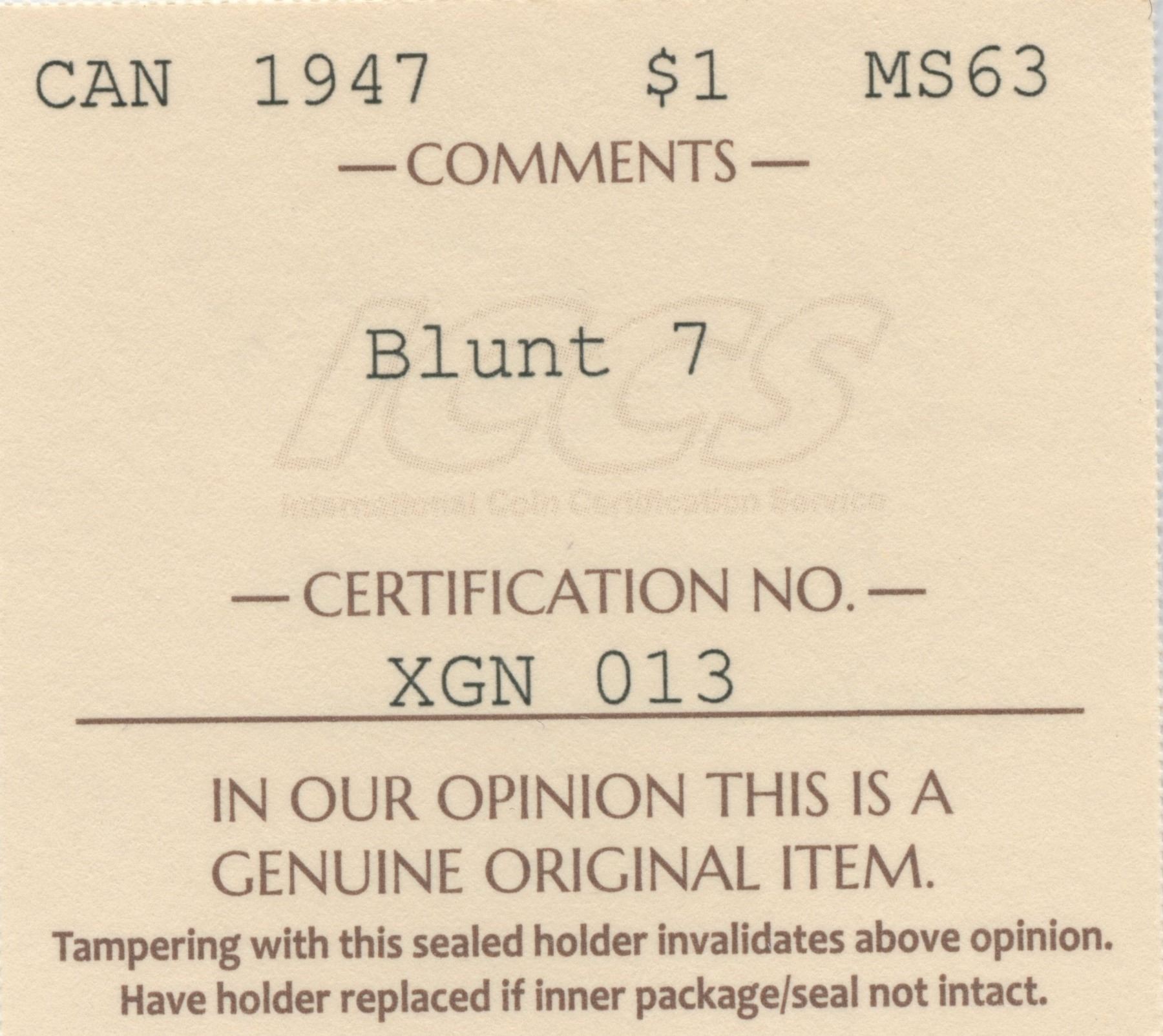 1947 Silver Dollar - Blunt 7