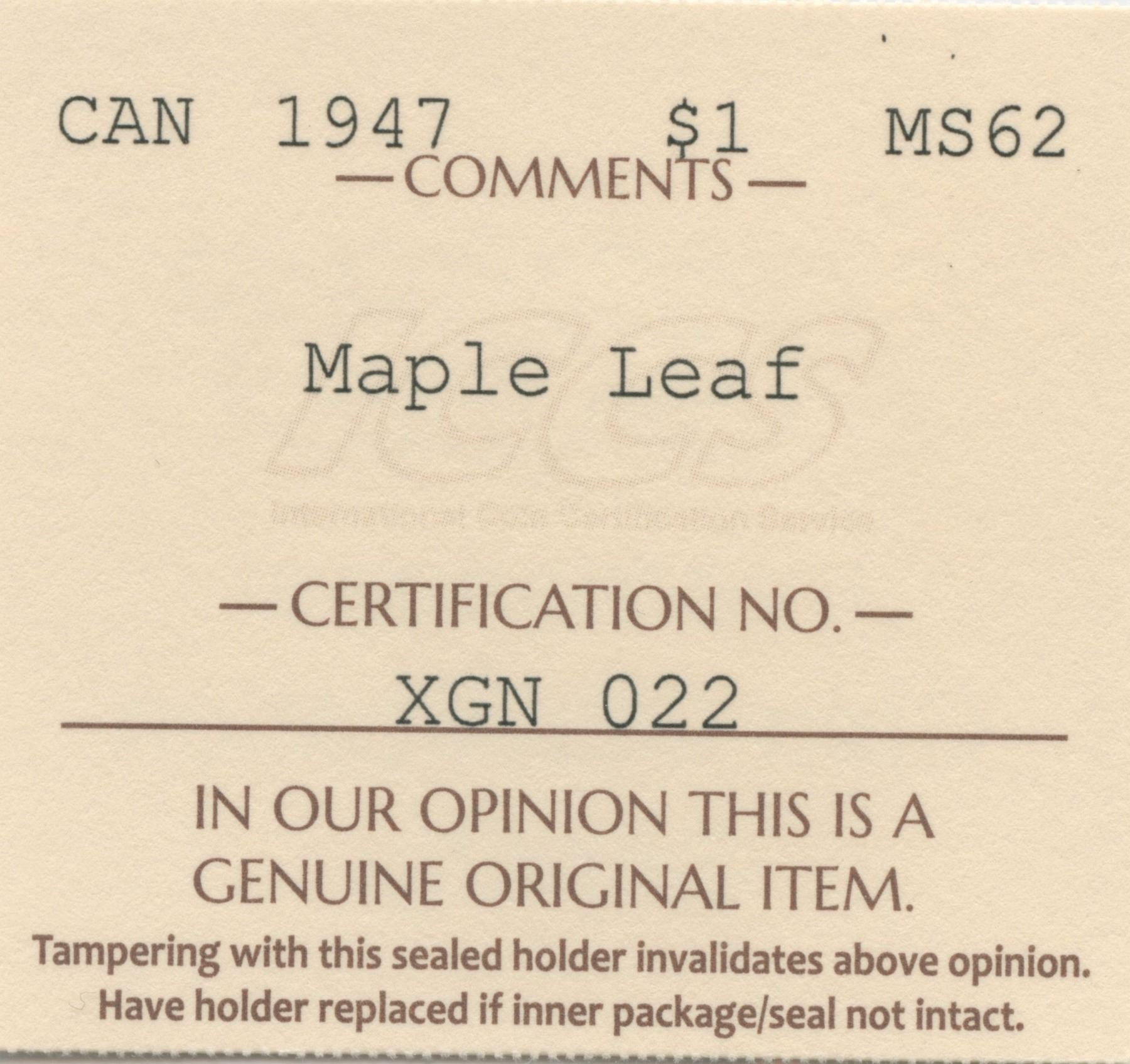 1947 Silver Dollar - Maple Leaf