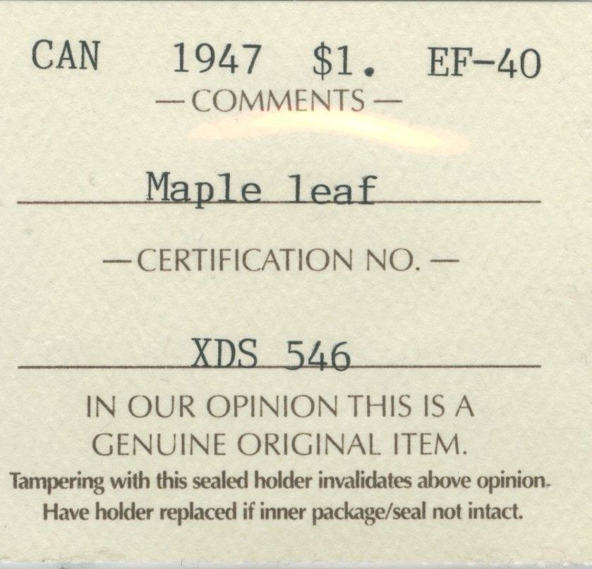 ICCS EF-40. Maple Leaf. Original, soft gun-metal toning.