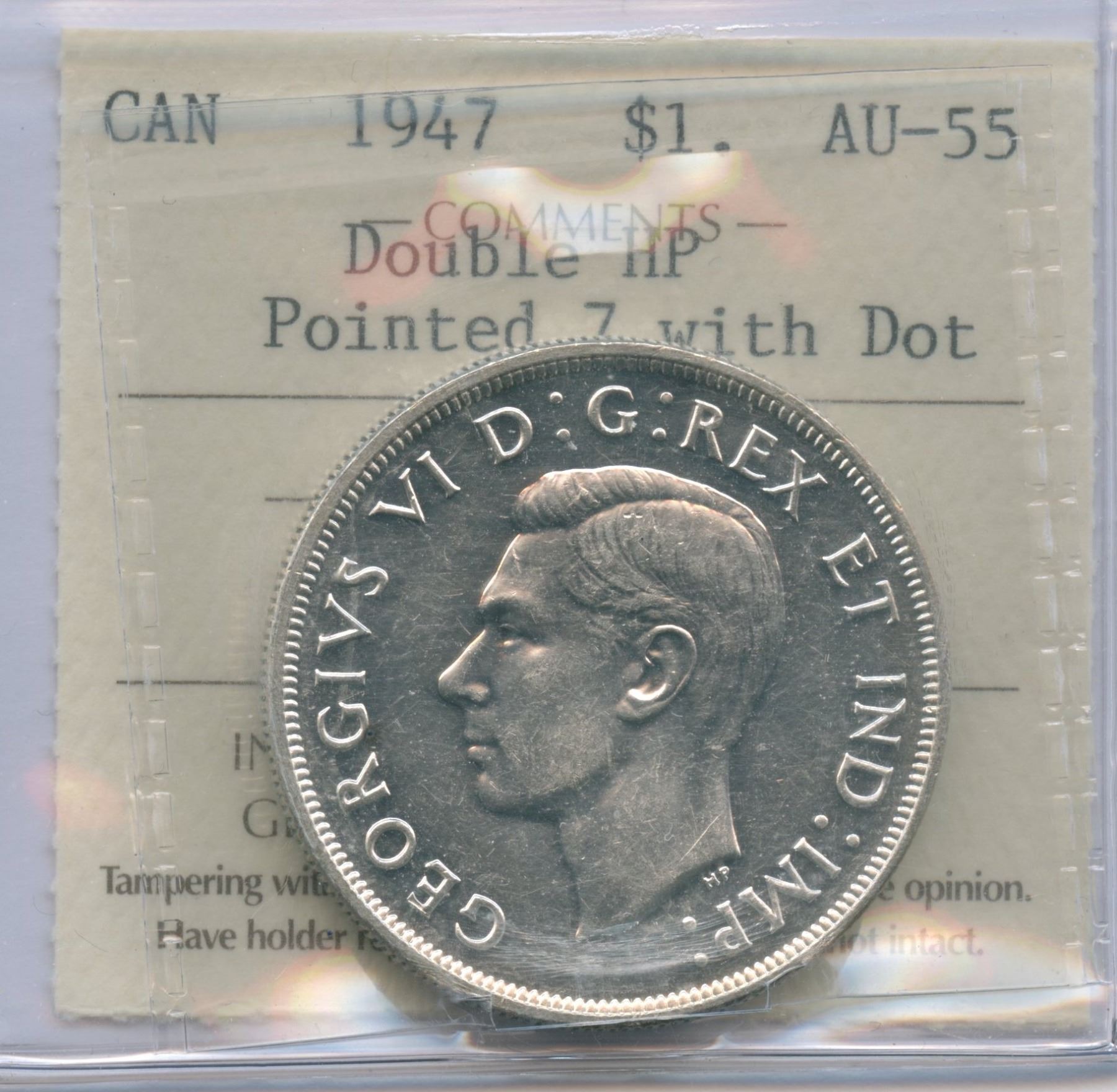 1947 Silver Dollar - Pointed 7; Double HP with Dot