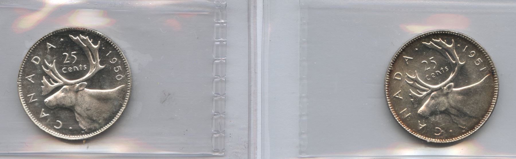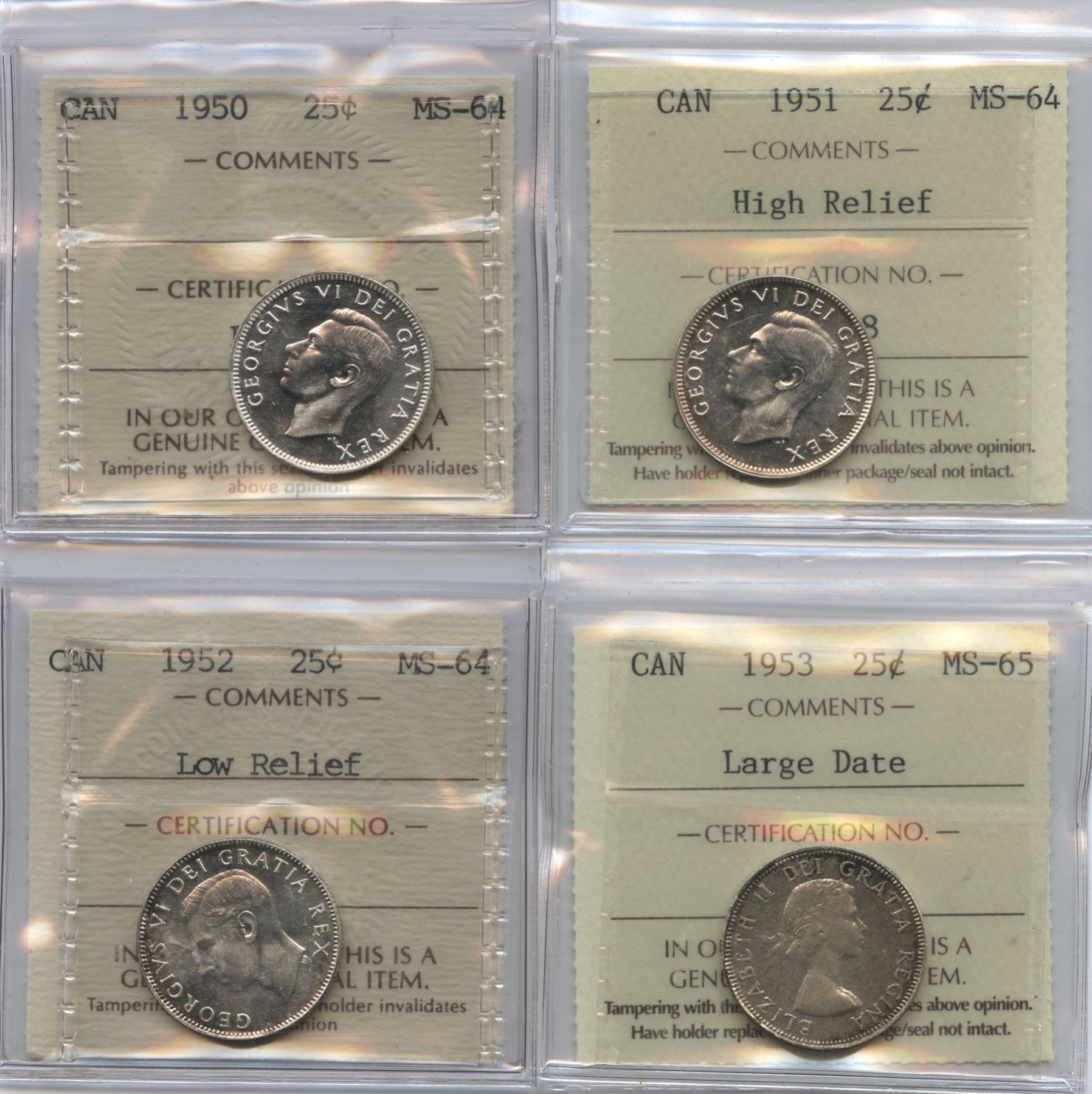 1950 MS-64; 1951 High Relief MS-64; 1952 Low Relief MS-64; 1953 Large Date MS-65. 4 Pcs.
