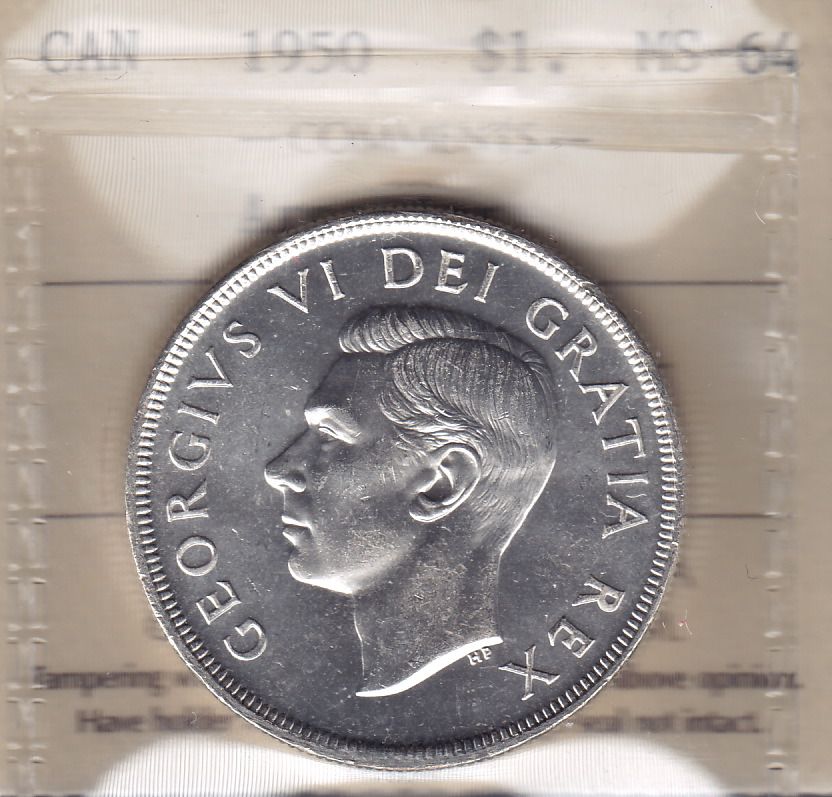1950 Silver Dollar - ICCS MS-64, Blast white, Arnprior Variety.