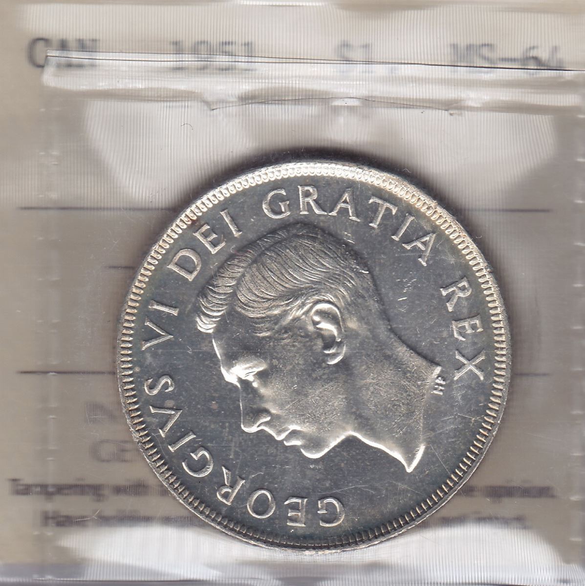 1951 Silver Dollar - ICCS MS-64. A bit bright but an exceptionally well struck piece.