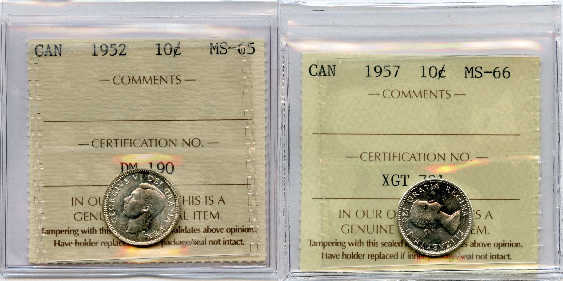 Includes: 1952 MS-65. 1957 MS-66. 2 pcs.