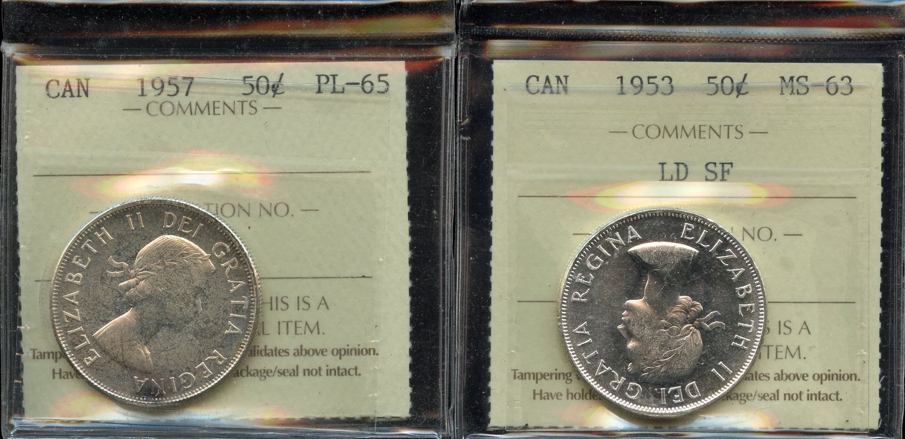 Includes: 1953 MS-63. Large Date, Shoulder Fold & 1957 PL-65. 2 Pcs.