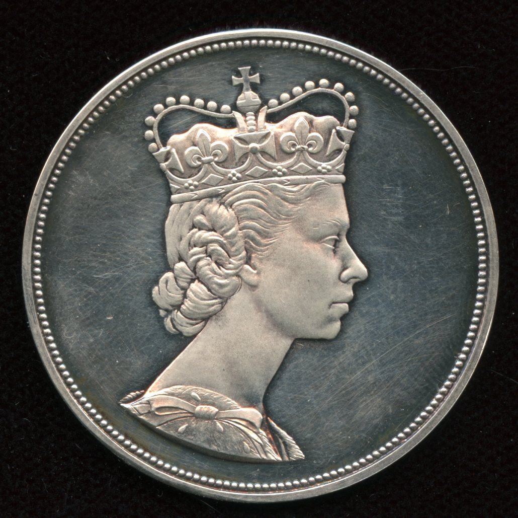 Canada, fine silver indicated on the rim. 40mm. Minted by the Munich firm of Muenzen und Medallien. The reverse portrays symbols of the British Royalty and the obverse shows the coronation picture of the Queen. Lightly cleaned.