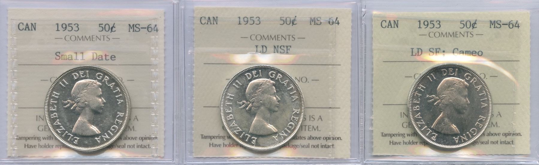 Includes: 1953 MS-64, Small Date. 1953 MS-64, LD NSF. 1953 MS-64, LD SF; Cameo. 3 pcs.