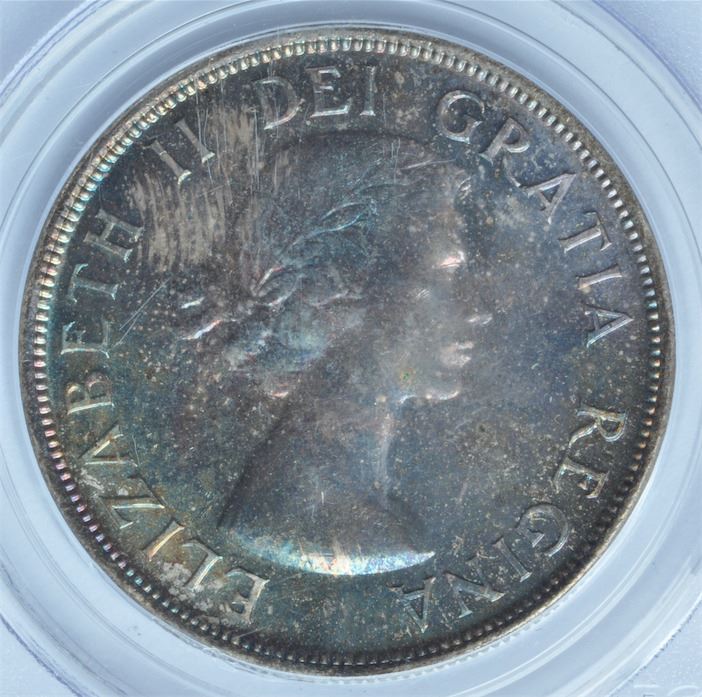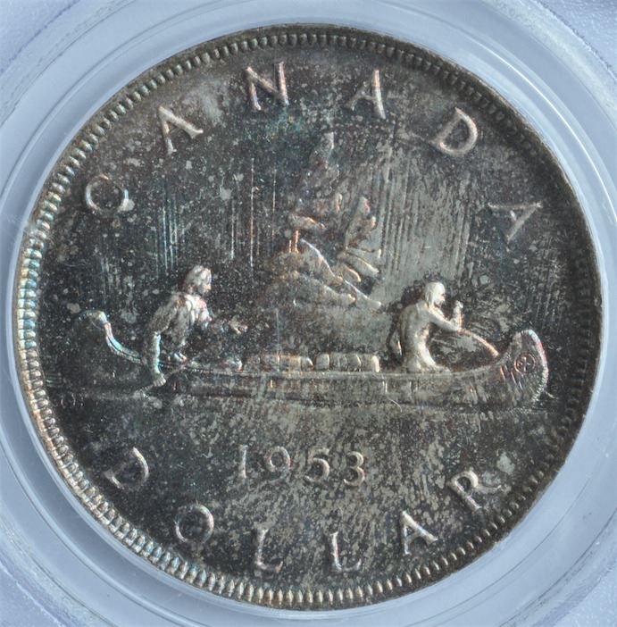 1953 Silver Dollar - PCGS MS65. No Shoulder Fold. Lovely rainbow toning on a gem strike.