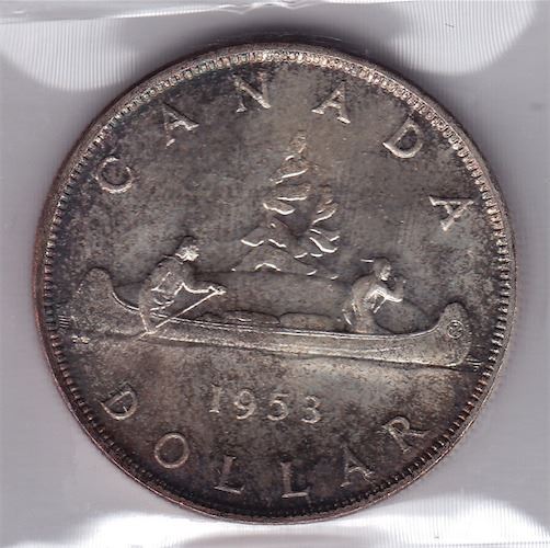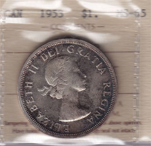 1953 Silver Dollar - ICCS MS-65. Shoulder fold, Cameo.