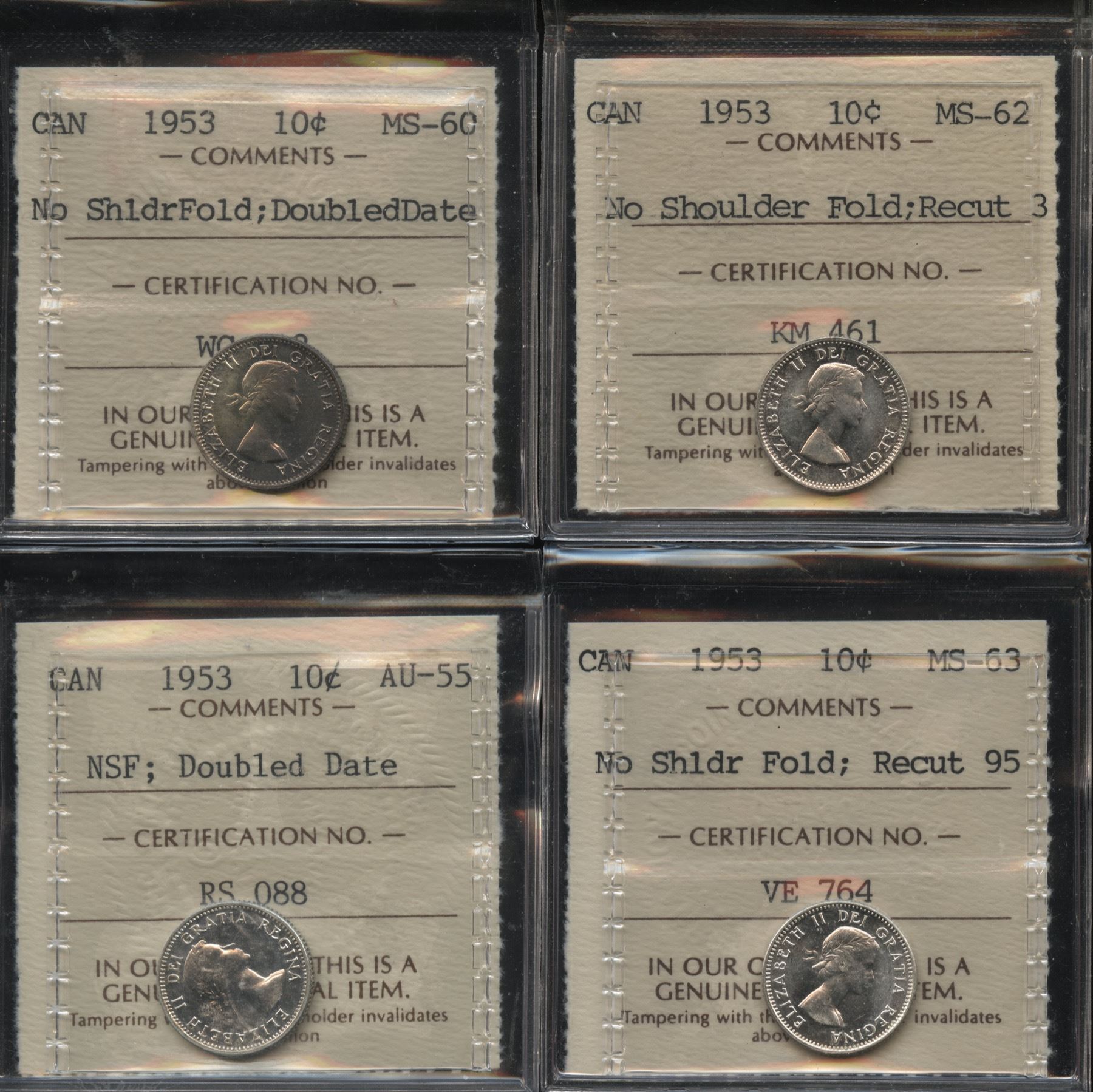 Includes: AU-55 & MS-60 Doubled Date. MS-62 Recut 3. MS-63 Recut 95. 4 Pcs.