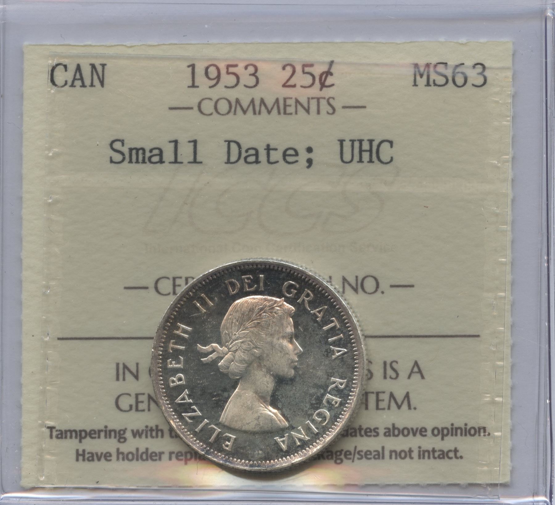 ICCS MS63, Small Date; Ultra Heavy Cameo.
