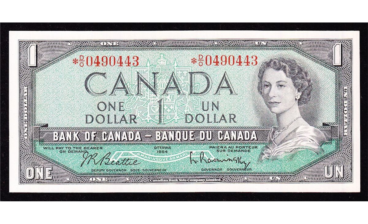 1954 Bank of Canada $1 Replacement Note - CH BC-37bA, Choice Uncirculated. S/N:*D/O0490443.
