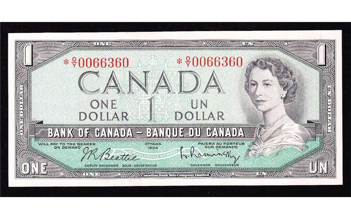 1954 Bank of Canada $1 Replacement Note - CH BC-37bA, Uncirculated. S/N:*O/Y0066360.