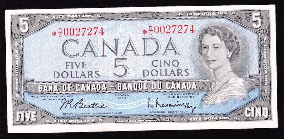 1954 Bank of Canada $5 Replacement Note - CH BC-39aA-i, Choice Unc, S/N:*R/C0027274.