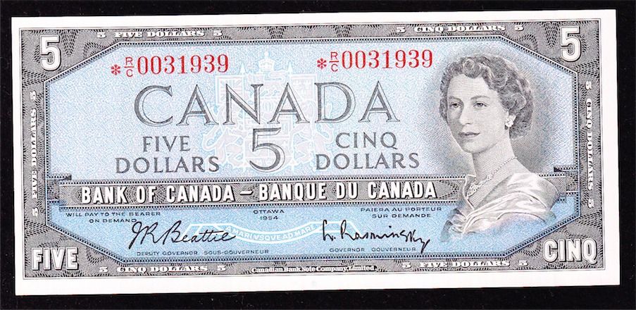1954 Bank of Canada $5 Replacement Note - CH BC-39aA-i, Uncirculated, S/N:*R/C0031939.