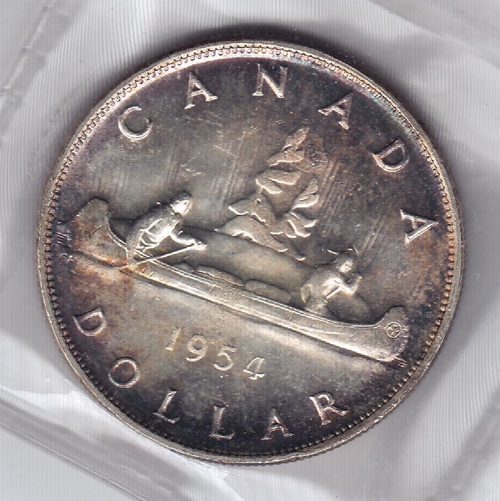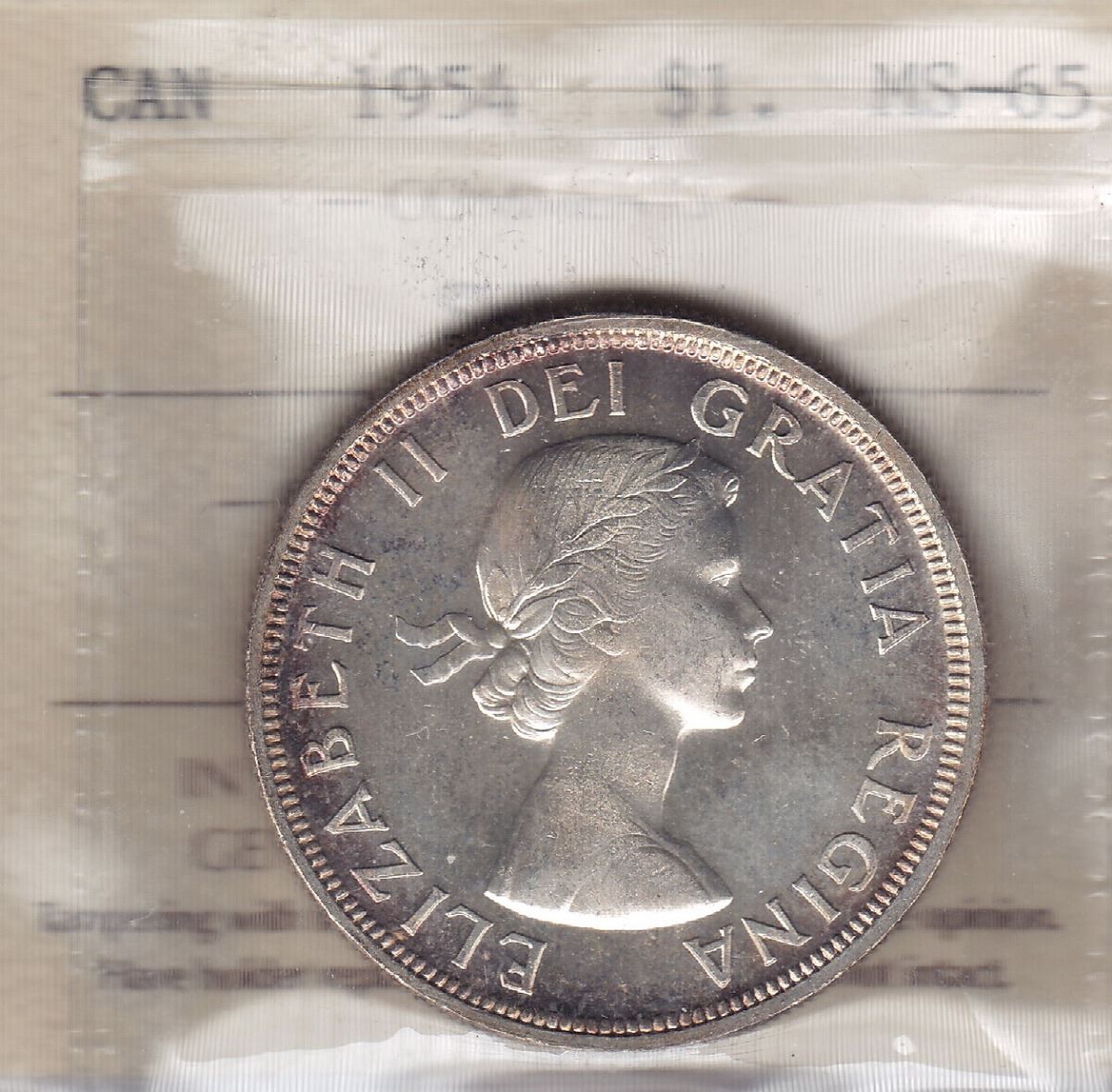 1954 Silver Dollar - ICCS MS-65. Superb strike, small amount of toning in the devices.