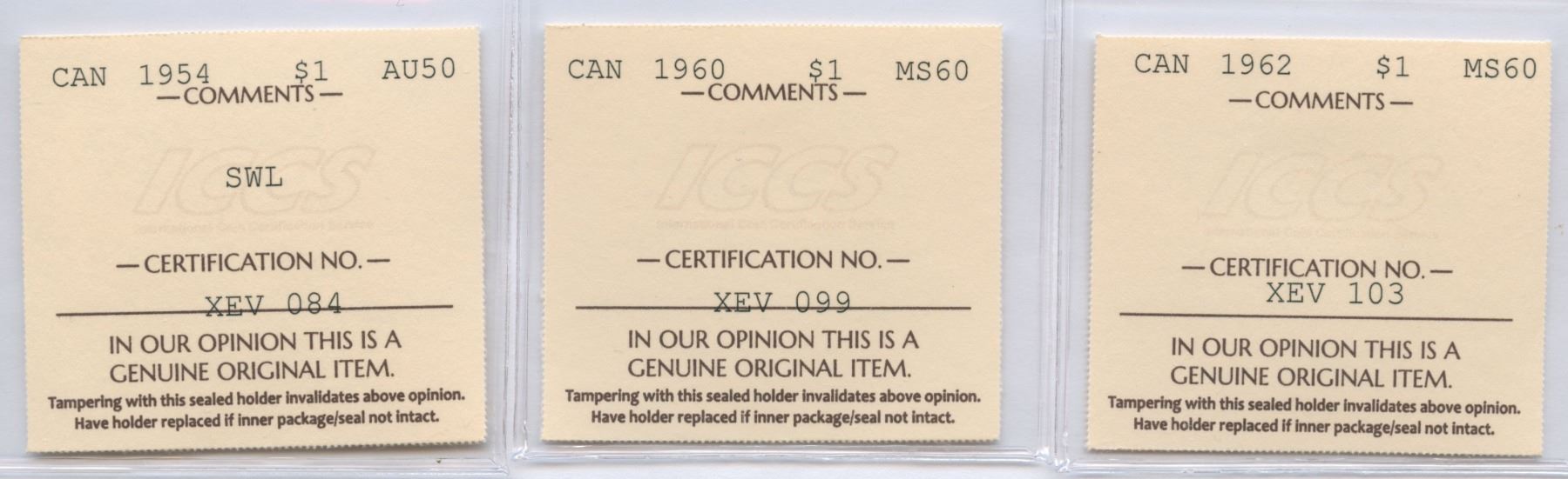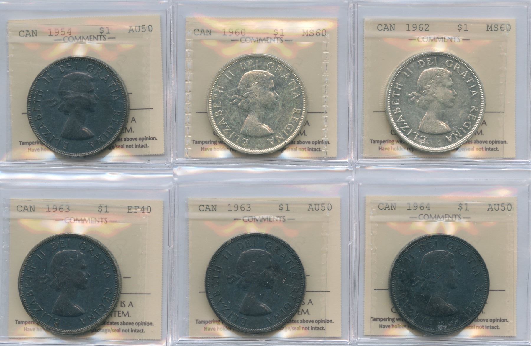 1954 to 1964 Silver Dollars - ICCS Graded Lot of 6