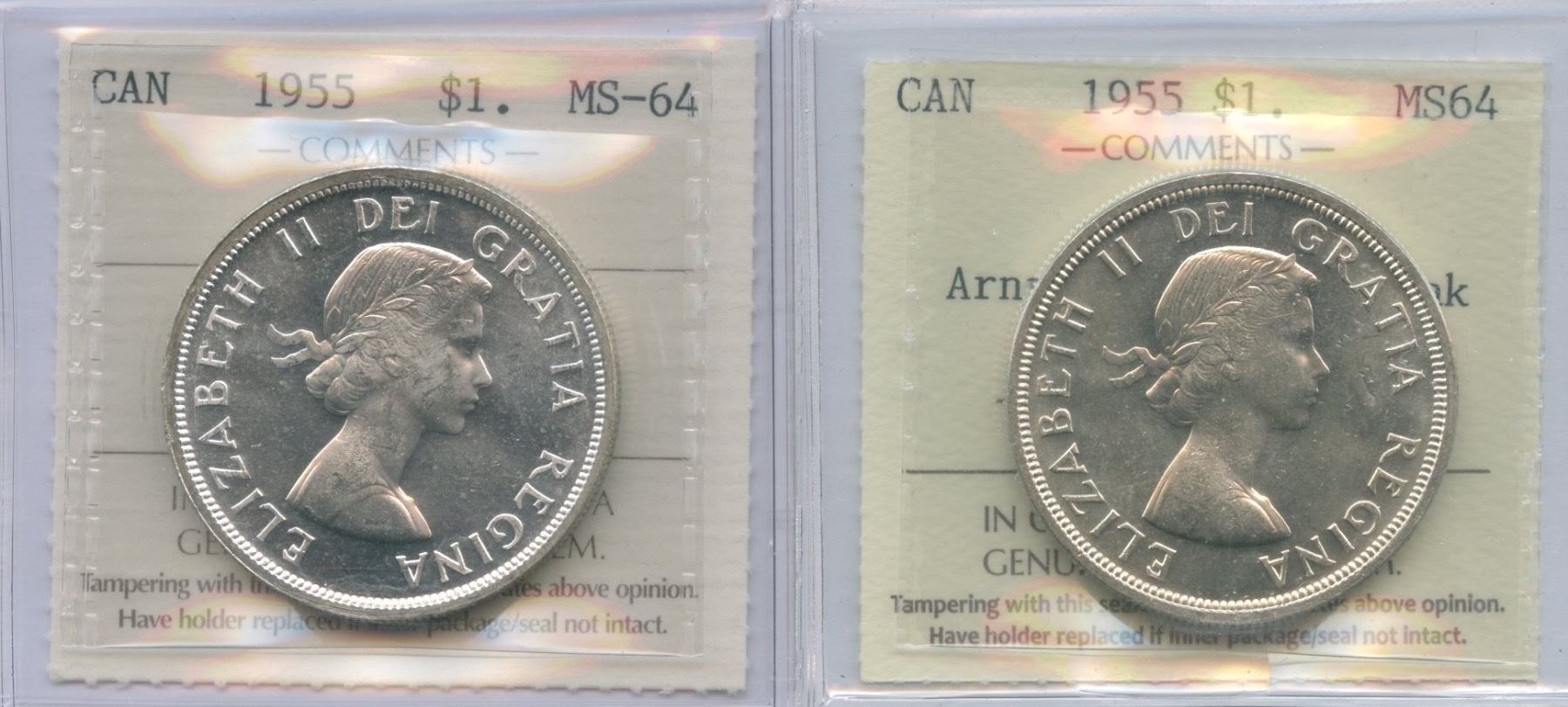 Includes: Both ICCS Graded, 1955 MS-64 & 1955 MS64, Arnprior with Die Break. 2 pcs.
