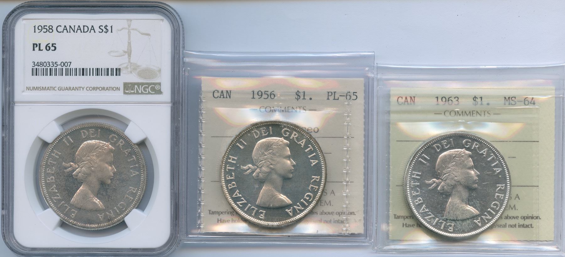 Includes: 1956 PL-65; Heavy Cameo. 1958 NGC PL65. 1963 MS-64. 3 pcs.