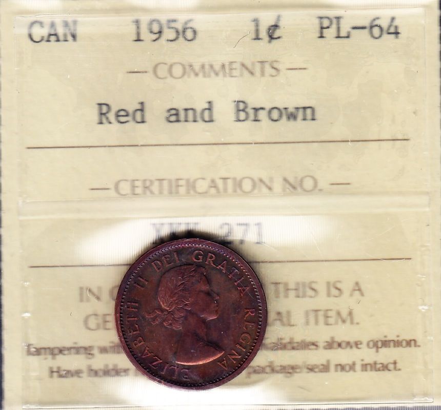 1956 One Cent - Red & Brown, ICCS PL-64.